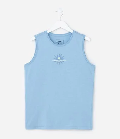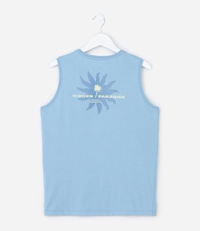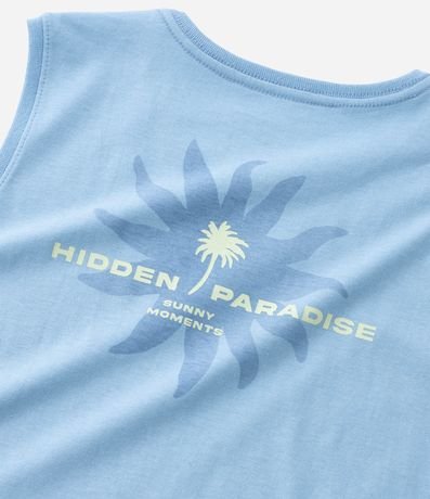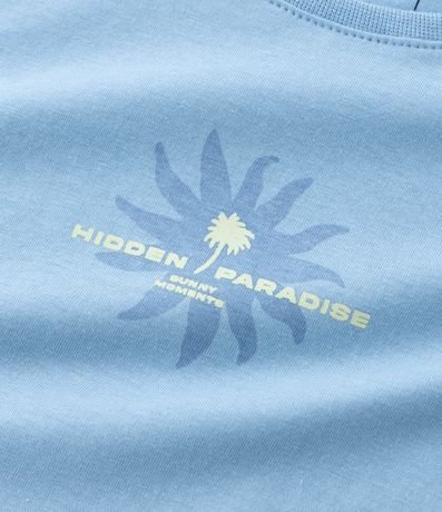 Ref: Regatinha infantil confeccionada em algodão mais sustentável, com gola redonda e estampa frente e costas com lettering "Hidden Paradise".