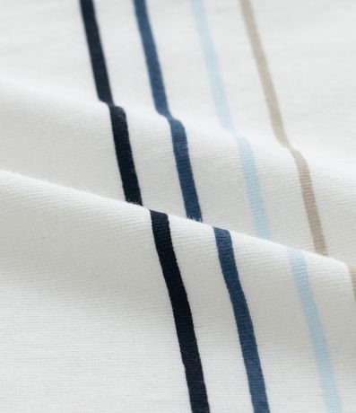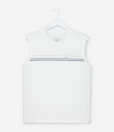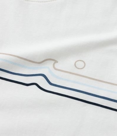Ref: Regata infantil confeccionada em algodão mais sustentável, com gola redonda e estampa de listras e ondas.