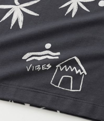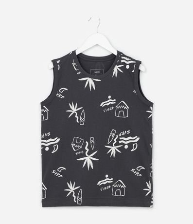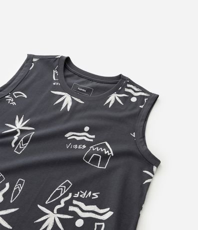 Ref: Regata infantil confeccionada em algodão mais sustentável através de boas práticas ambientais. Possui gola redonda, cava e estampa tropical.