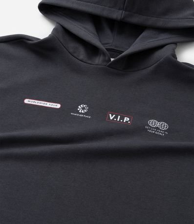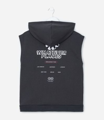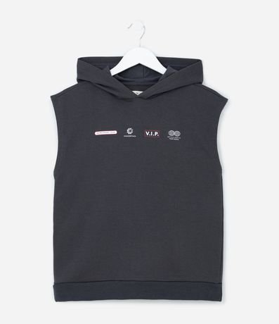 Regata Infantil em Moletinho com Estampa Lettering e Capuz - Tam 5 A 14 Anos