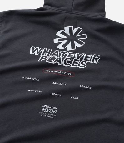 Regata infantil confeccionada em moletinho mais sustentável através de boas práticas ambientais. Possui capuz, estampa lettering e barra canelada.