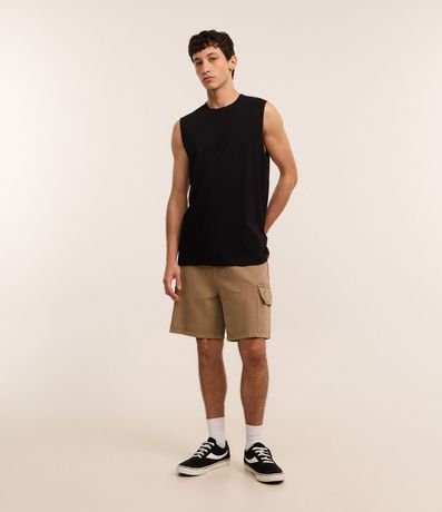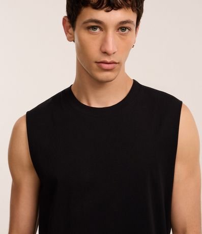 Ref: Regata masculina básica, de modelo machão, confeccionada em malha de algodão mais responsável, com gola redonda e sem estampa.