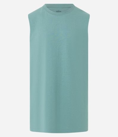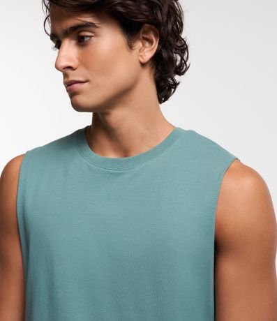 Ref: Regata masculina básica, de modelo machão, confeccionada em malha de algodão mais responsável, com gola redonda e sem estampa.