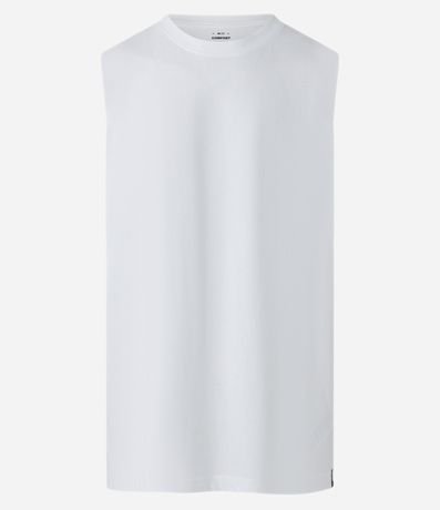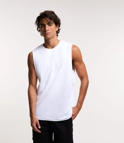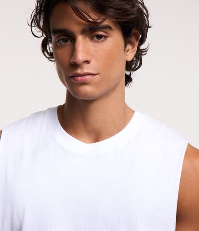 Ref: Regata masculina básica, de modelo machão, confeccionada em malha de algodão mais responsável, com gola redonda e sem estampa.