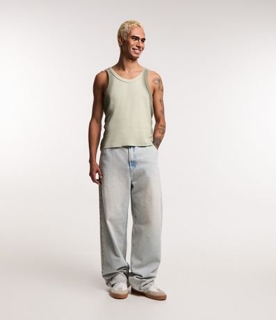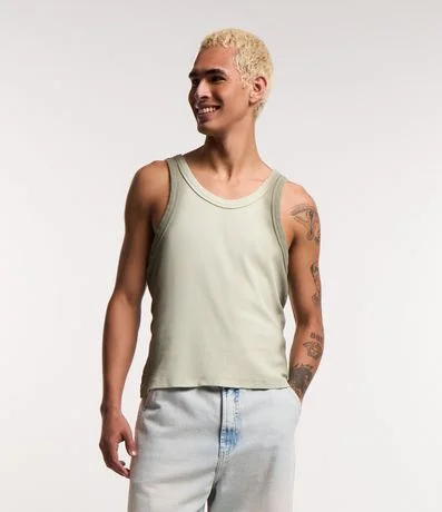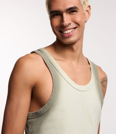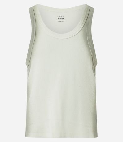 Regata muscle, confeccionada em ribana, leve textura e com efeito spray nas cavas.