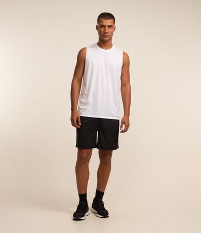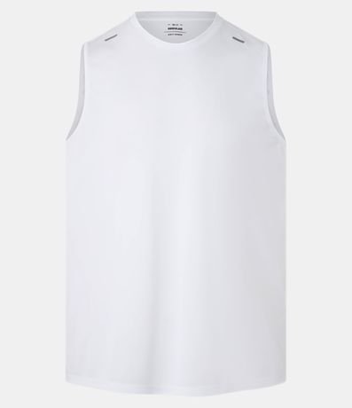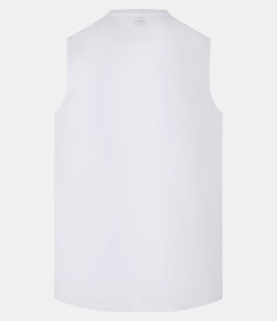 Ref: Regata regular esportiva básica, com gola redonda, recortes laterais e lettering na barra.