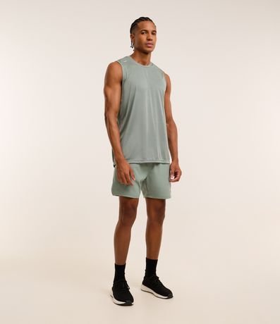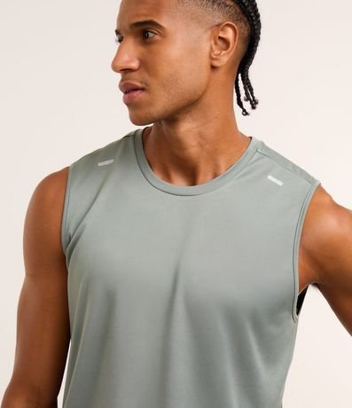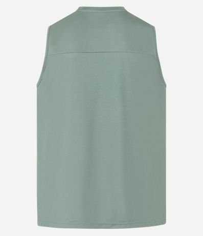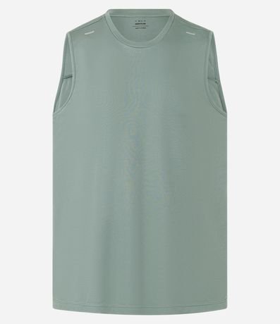 Ref: Regata regular esportiva básica, com gola redonda, recortes laterais e lettering na barra.