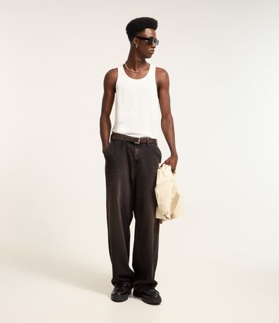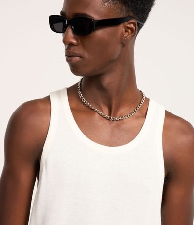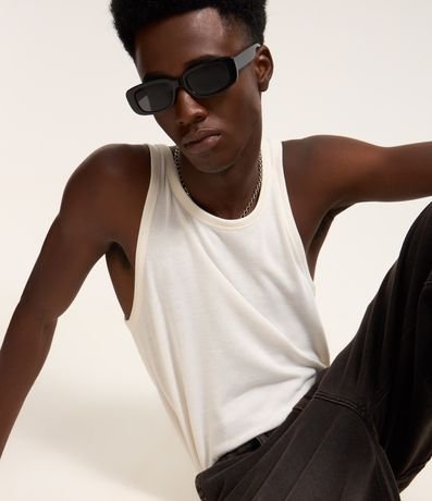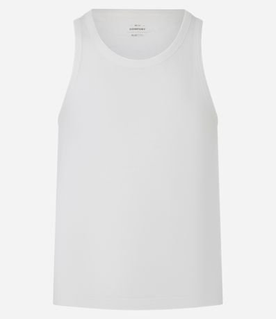 Ref: Regata masculina confeccionada em algodão mais sustentável, de modelo regular, com gola redonda e textura.