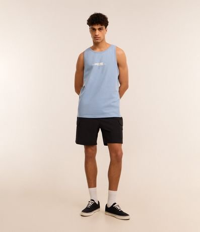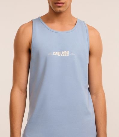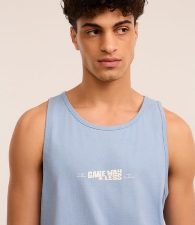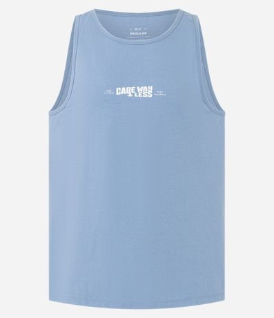 Regata masculina confeccionada em algodão mais sustentável com boas práticas ambientais, no modelo regular. Possui gola redonda e estampa lettering "Care way less" frontais.