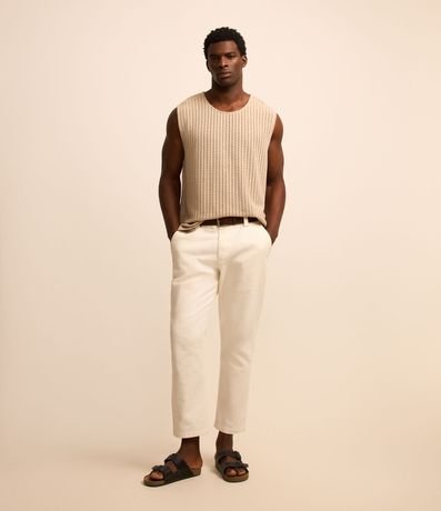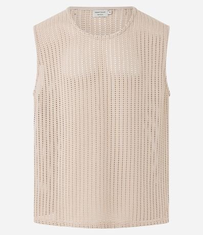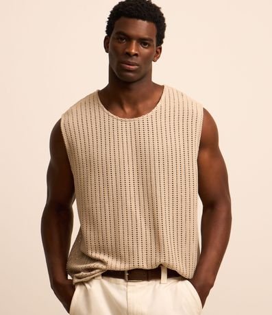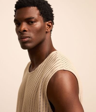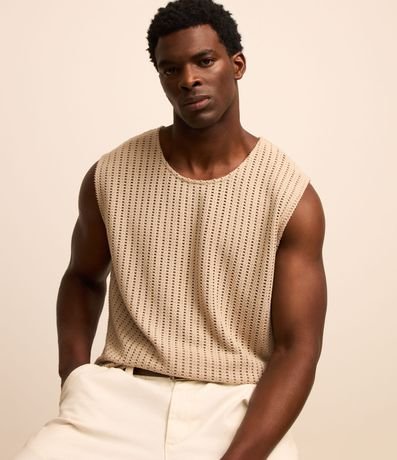 Ref: Regata masculina confeccionada em material mais sustentável, com gola redonda, peça no modelo regular com textura rendada.