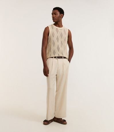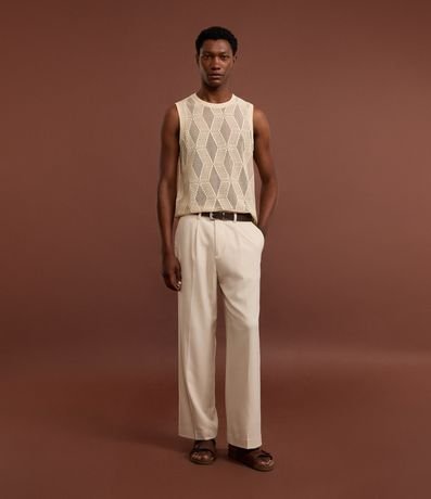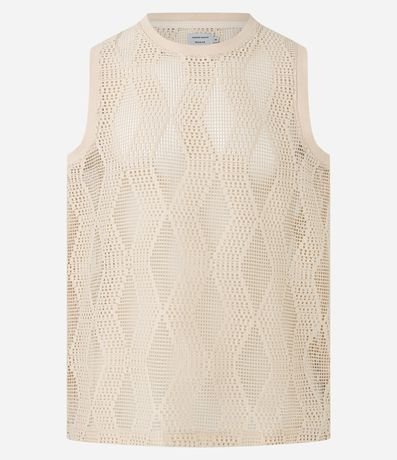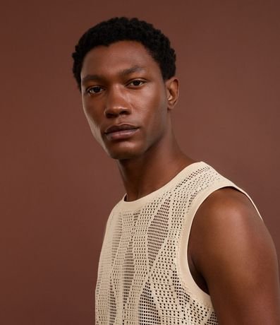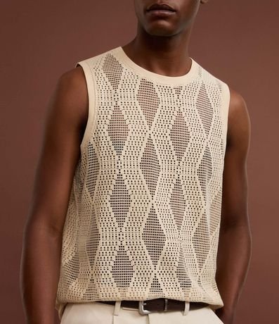 Ref: Regata masculina confeccionada em jacquard mais sustentável, no modelo regular. Possui gola redonda, viés canelado, telada e com textura quadriculada.