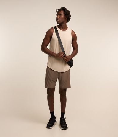 Ref: Regata esportiva masculina, modelo regular, com gola redonda, etiqueta aplicada na barra, costura aparente e detalhe contrastante nas costas.