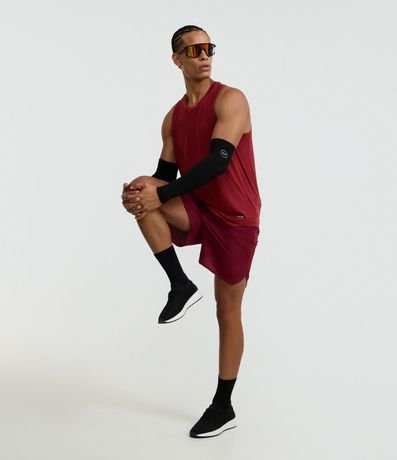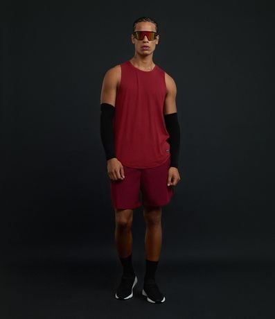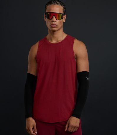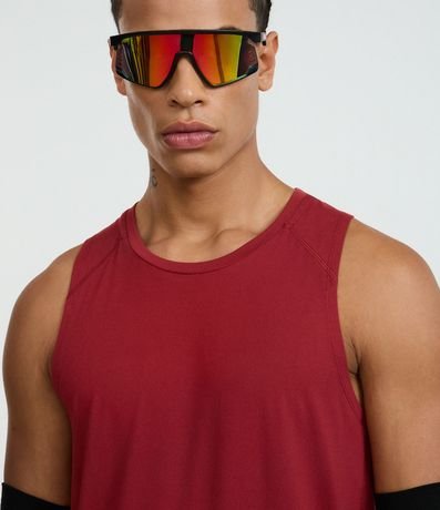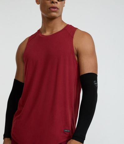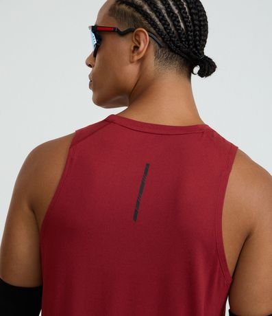 Ref: Regata esportiva masculina, modelo regular, com gola redonda, etiqueta aplicada na barra, costura aparente e detalhe contrastante nas costas.