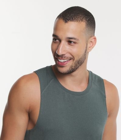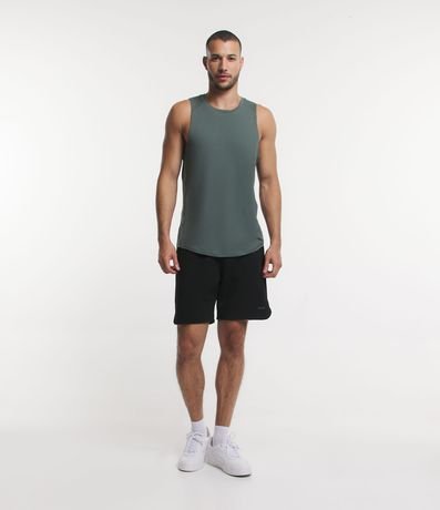 Ref: Regata esportiva masculina, modelo regular, com gola redonda, etiqueta aplicada na barra, costura aparente e detalhe contrastante nas costas.