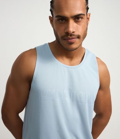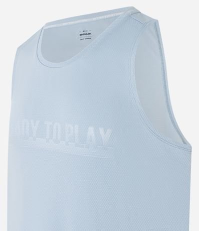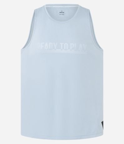 Regata masculina, esportiva, modelo regular, com gola redonda. Peça contém estampa lettering "Ready to play".