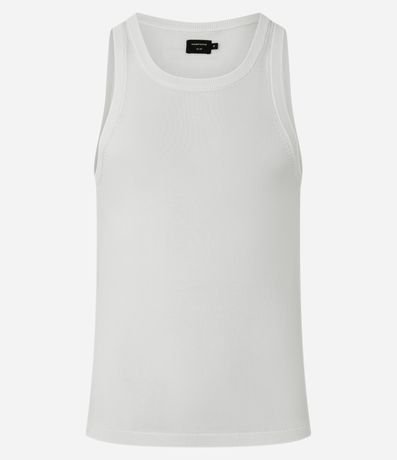 Regata masculina no modelo slim, confeccionada em tricô mais sustentável com gola redonda.