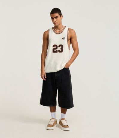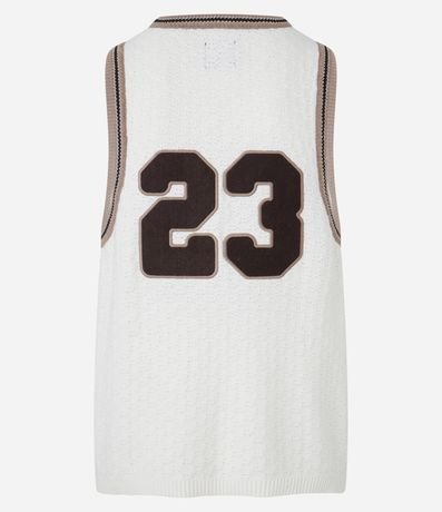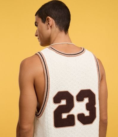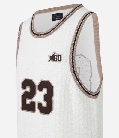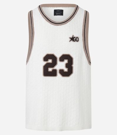 Ref: Regata masculina confeccionada em tricô mais sustentável, no modelo sportcore. Possui gola redonda, viés contrastante e número 23.