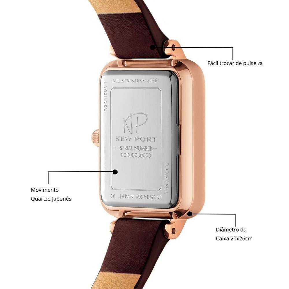 Rel. Fem. Quadr. Marr. Eleg. New Port c/Bracelete