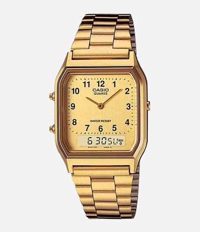 O modelo AQ-230GA-9 possui design clássico, unindo as funcionalidades digitais com os ponteiros analógicos, para seu dia a dia dinâmico e ao mesmo tempo social. Possui pulseira ajustável, resistência à água, hora dupla, alarme configurável, cronômetro e calendário.