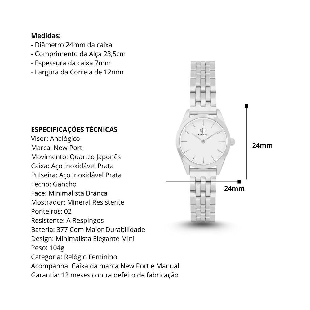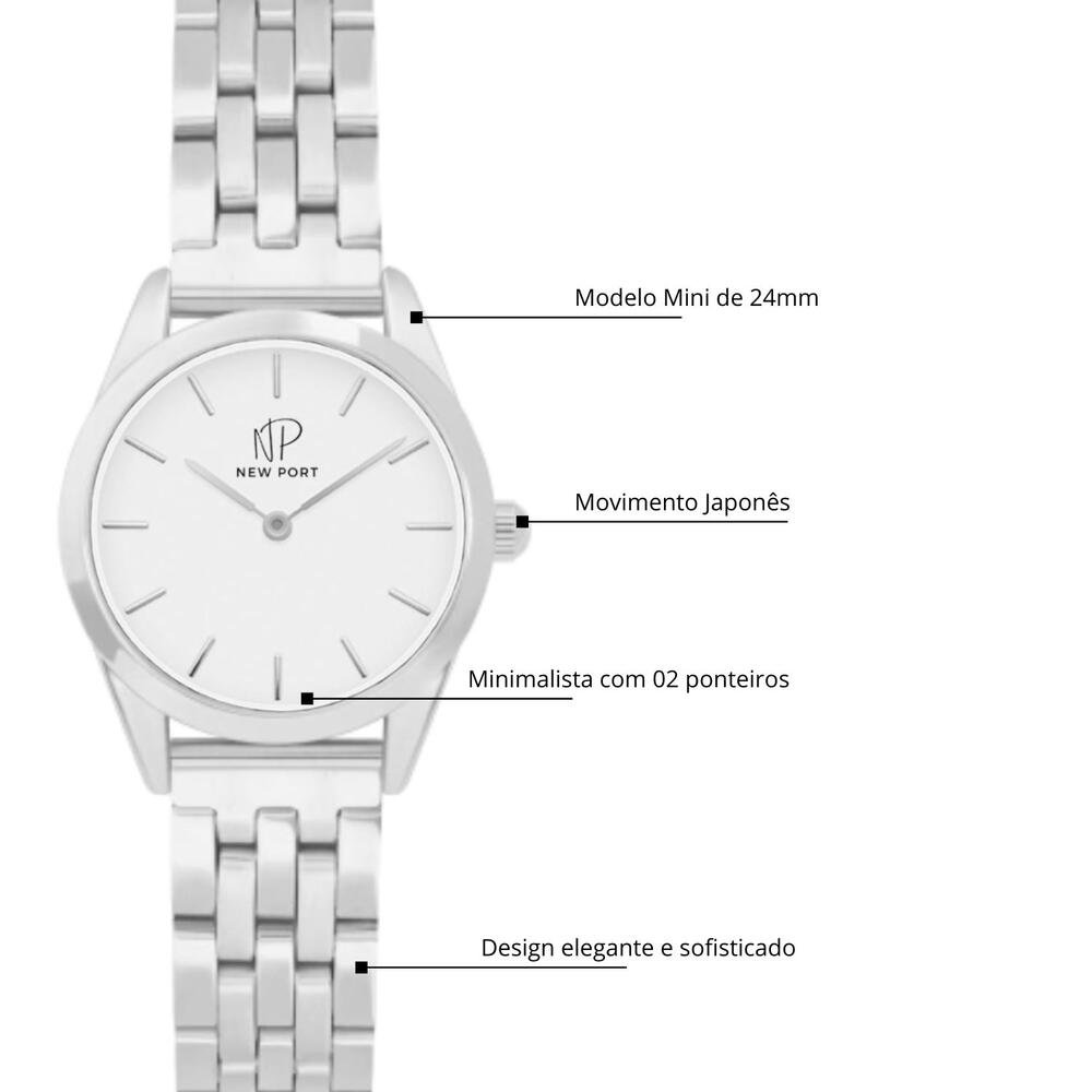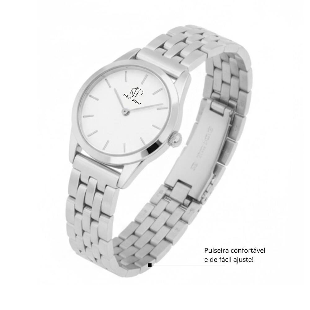 Relógio Feminino Prata Elegante Delicado Pequeno New Port