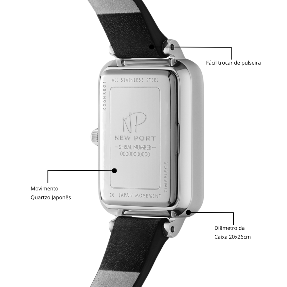 Este conjunto exala sofisticação e modernidade, conferindo um toque de confiança e atitude ao seu estilo. Com uma estética equilibrada e um ajuste perfeito, é a escolha ideal para todos os tipos de pulso. Uma verdadeira expressão da excelência da linha New Port, que une funcionalidade e beleza de forma única.