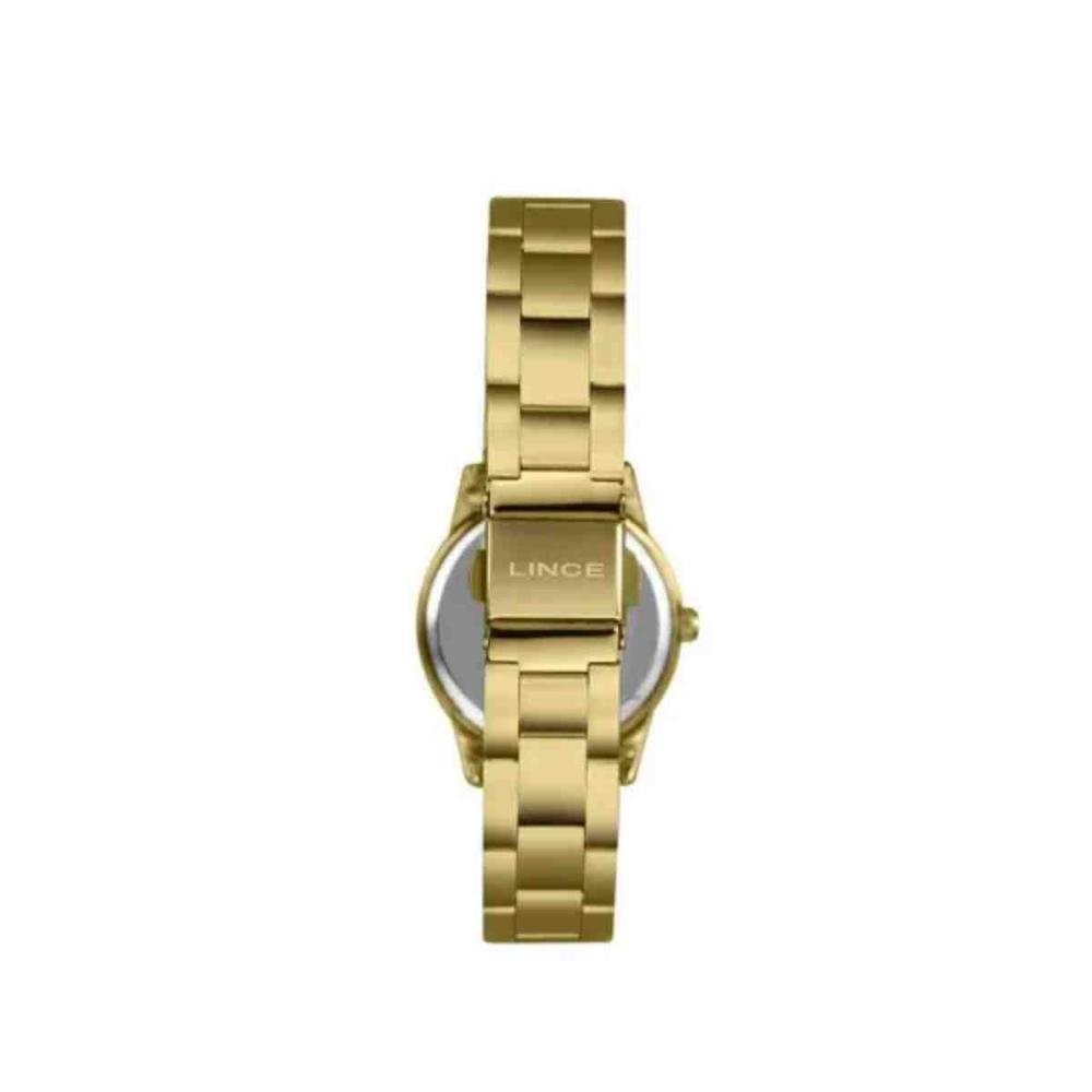 Seja bem-vindo à Elister! Aqui, priorizamos a qualidade através de produtos 100% originais, com garantia contra defeitos de fabricação e nota fiscal. Estamos há mais de 50 anos no mercado oferecendo uma ampla variedade de acessórios, incluindo relógios e óculos de sol, com as melhores marcas e estilos. Além disso, a nossa equipe é treinada para oferecer um atendimento excepcional, garantindo que cada cliente seja tratado com o respeito e a atenção que merece. Realizando a compra, não deixe de nos avaliar! Sua opinião é muito importante para aperfeiçoar cada vez mais o nosso trabalho. Esse produto é original e acompanha: Embalagem original; Manual de instruções; Garantia do fornecedor; Nota fiscal simplificada, que vai colada junto à etiqueta. ESPECIFICAÇÕES TÉCNICAS - Marca: Lince - Referência: LRTM032L30 B2SK - Gênero: Feminino - Tipo de mostrador: Analógico - Tipo de movimento: Quartz - Tipo de fecho: Dobrável com trava lateral - Cor da caixa: Dourado - Cor do mostrador: Dourado - Cor da pulseira: Dourado - Material da caixa: Metal - Material da pulseira: Aço inoxidável - Largura da caixa: 3,0 cm - Espessura da caixa: 0,8 cm - Comprimento do relógio: 21 cm - Largura da pulseira: 1,2 cm - Resistência à água: 3 ATM (30 m) - Garantia: 15 meses