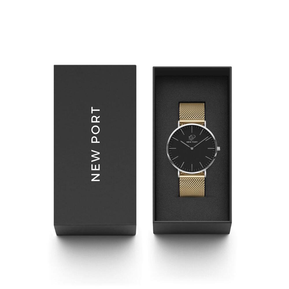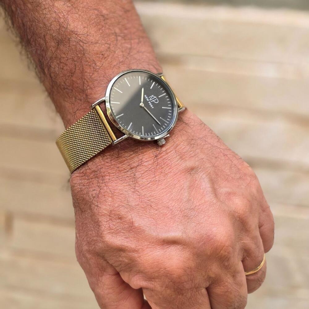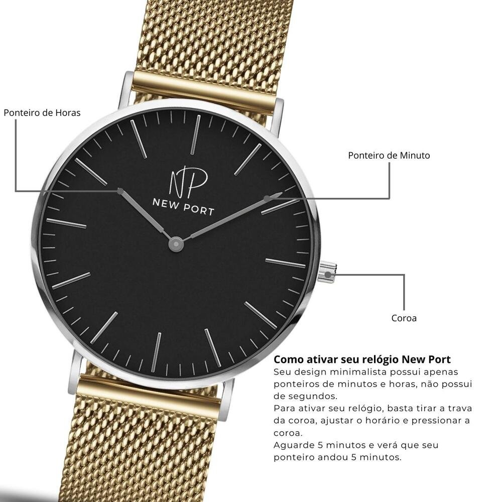 Um relógio clássico, reconhecido por suas linhas limpas e design simples. Com um mostrador minimalista e uma pulseira dourada perfeitamente coordenada, este relógio irradia elegância sem esforço. Sua presença se destaca em meio a multidões, tornando-se uma escolha distintiva para aqueles que apreciam o estilo atemporal.