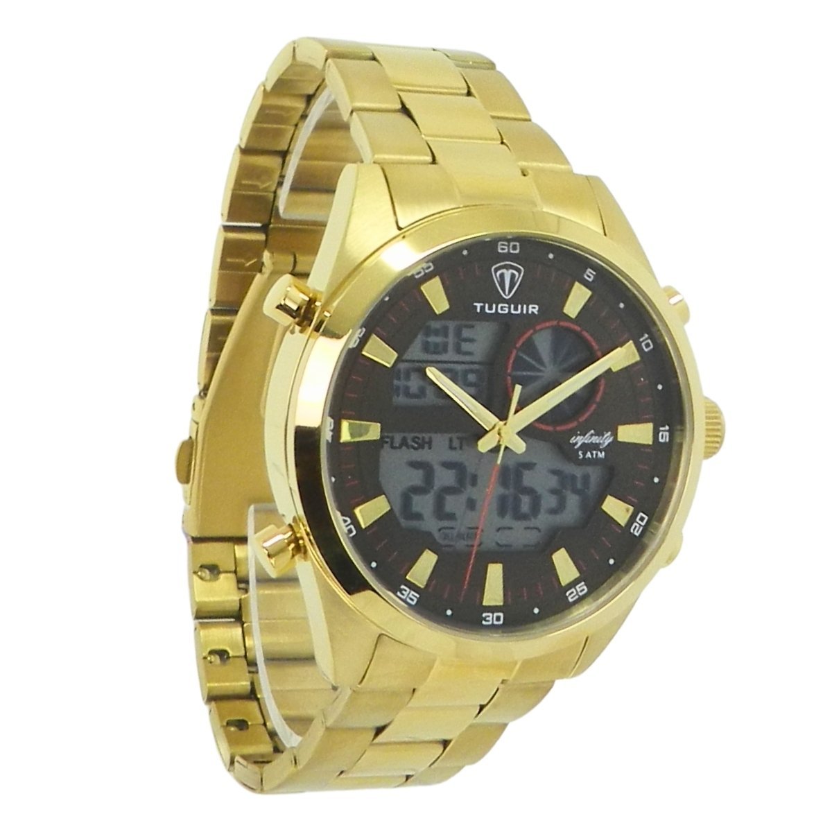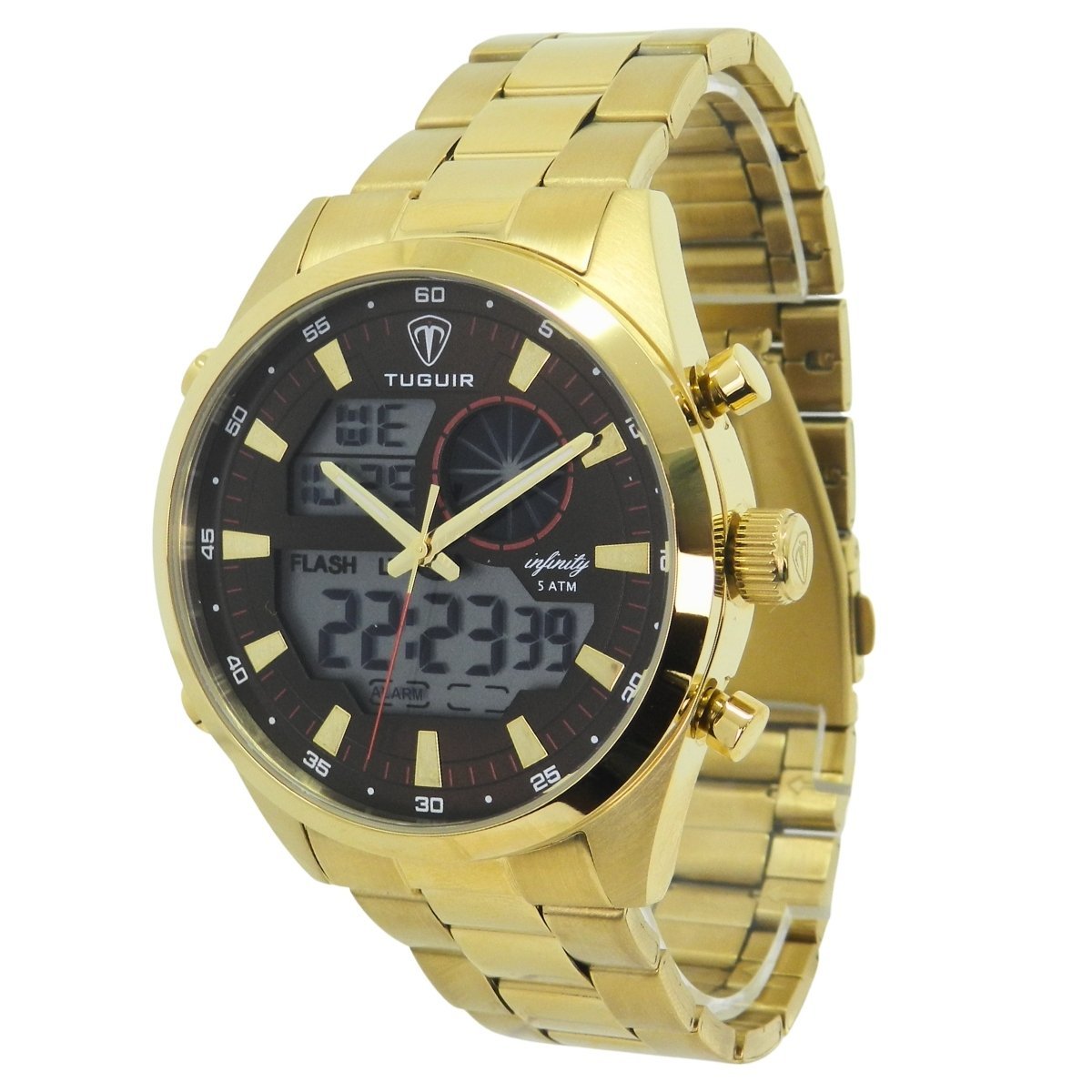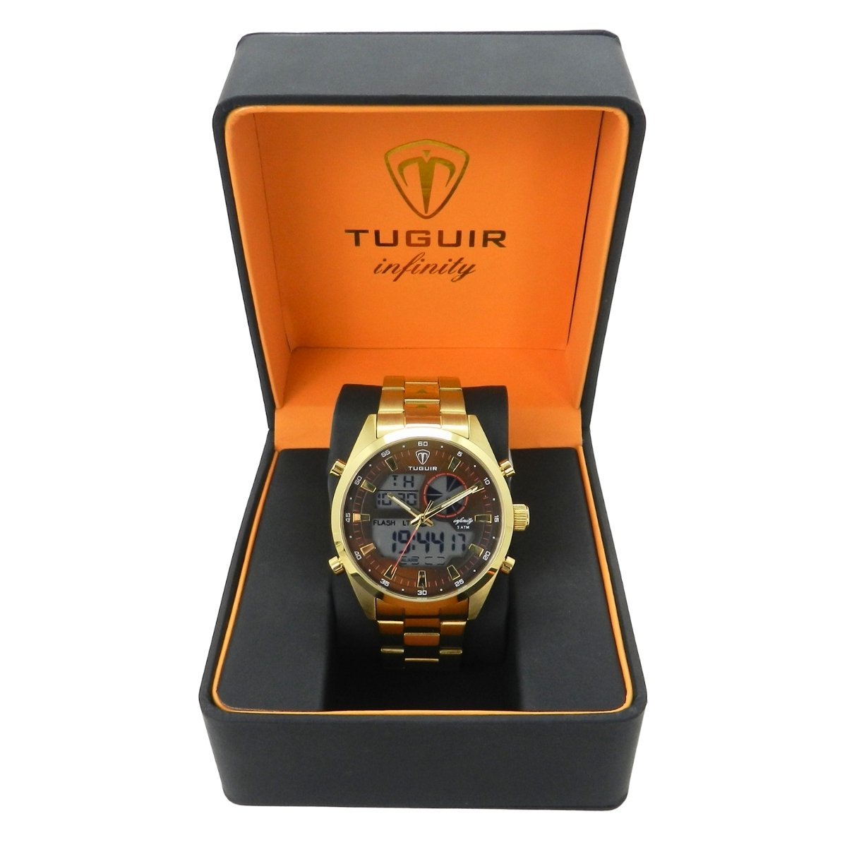 Relógio Masculino de Aço Tuguir AnaDigi Infinity GCS-1265 Dourado e Marrom