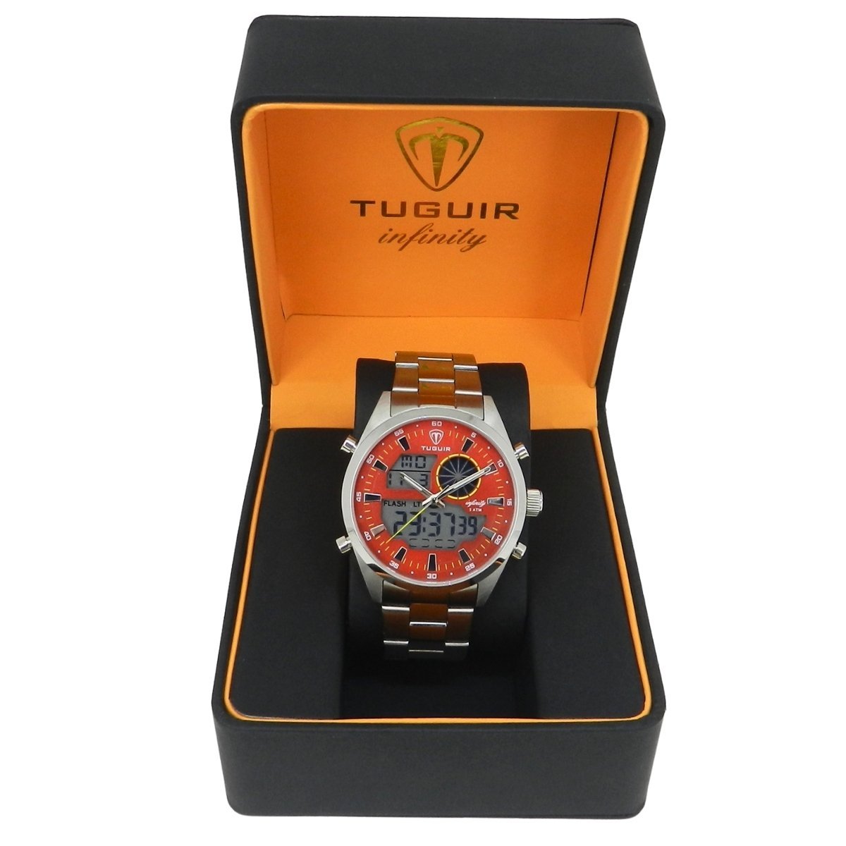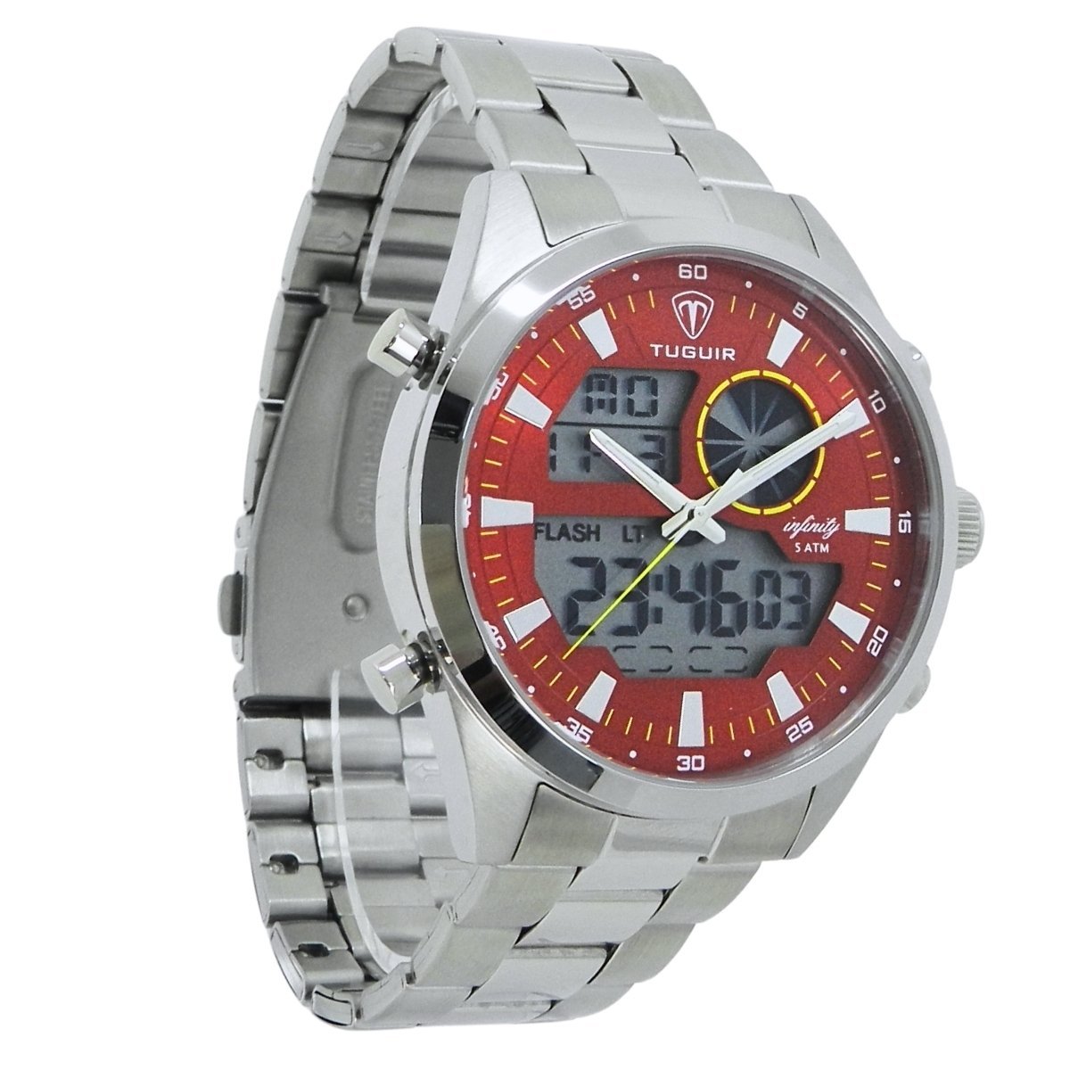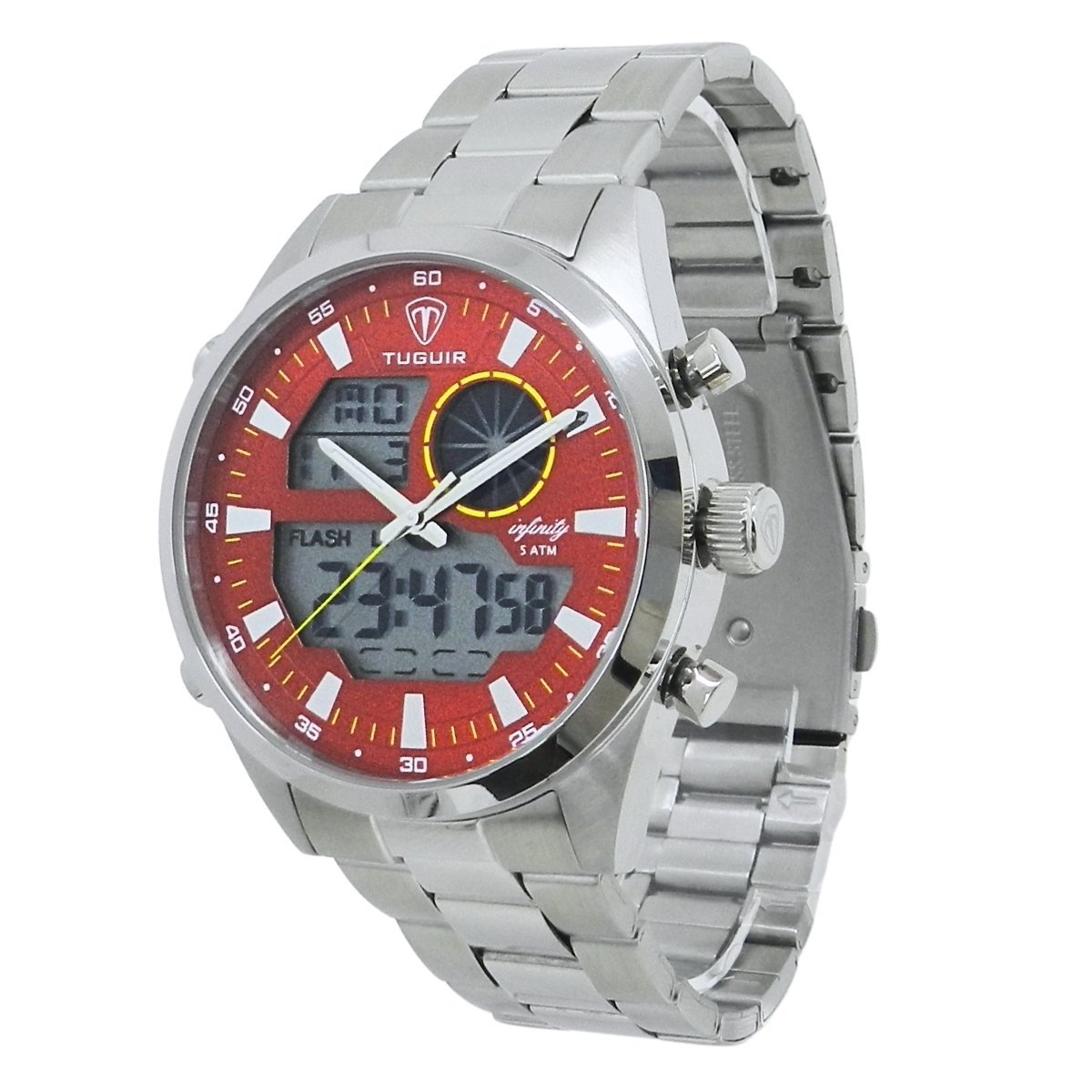 Relógio Masculino de Aço Tuguir AnaDigi Infinity GCS-1265 Prata e Vermelho