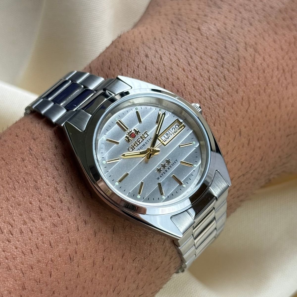 Com caixa compacta de 37 mm, o modelo mantém o estilo tradicional da linha Orient 3 Estrelas, conhecida mundialmente por sua durabilidade e excelente custo-benefício.