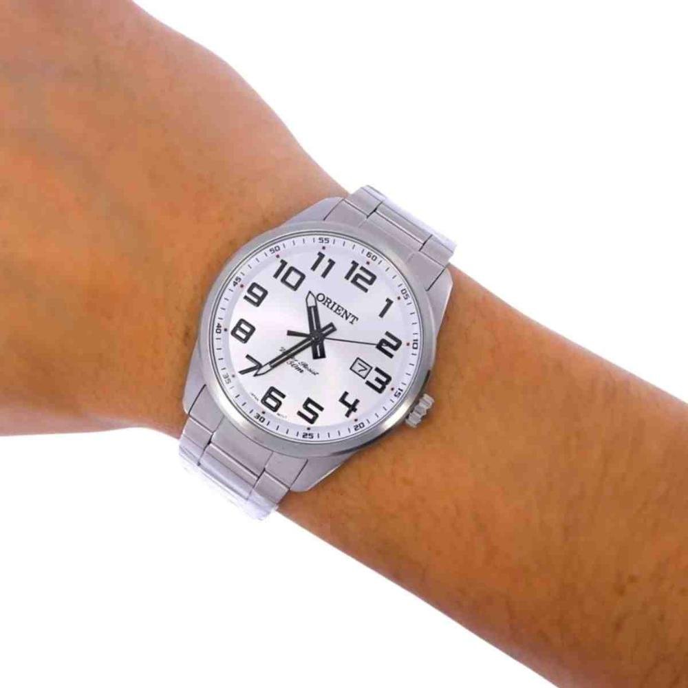 Seja bem-vindo à Elister! Aqui, priorizamos a qualidade através de produtos 100% originais, com garantia contra defeitos de fabricação e nota fiscal. Estamos há mais de 50 anos no mercado oferecendo uma ampla variedade de acessórios, incluindo relógios e óculos de sol, com as melhores marcas e estilos. Além disso, a nossa equipe é treinada para oferecer um atendimento excepcional, garantindo que cada cliente seja tratado com o respeito e a atenção que merece. Realizando a compra, não deixe de nos avaliar! Sua opinião é muito importante para aperfeiçoar cada vez mais o nosso trabalho. Esse produto é original e acompanha: Embalagem original; Manual de instruções; Garantia do fornecedor; Nota fiscal simplificada, que vai colada junto à etiqueta. ESPECIFICAÇÕES TÉCNICAS - Marca: Orient - Referência: MBSS1271 S2SX - Gênero: Masculino - Tipo de mostrador: Analógico - Função: Calendário - Tipo de fecho: Dobrável - Cor da caixa: Prata - Cor do mostrador: Branco - Cor da pulseira: Prata - Material da caixa: Aço - Material da pulseira: Aço - Largura da caixa: 4,5 cm - Espessura da caixa: 0,9 cm - Resistência à água: 5 ATM (50m) - Garantia: 15 meses