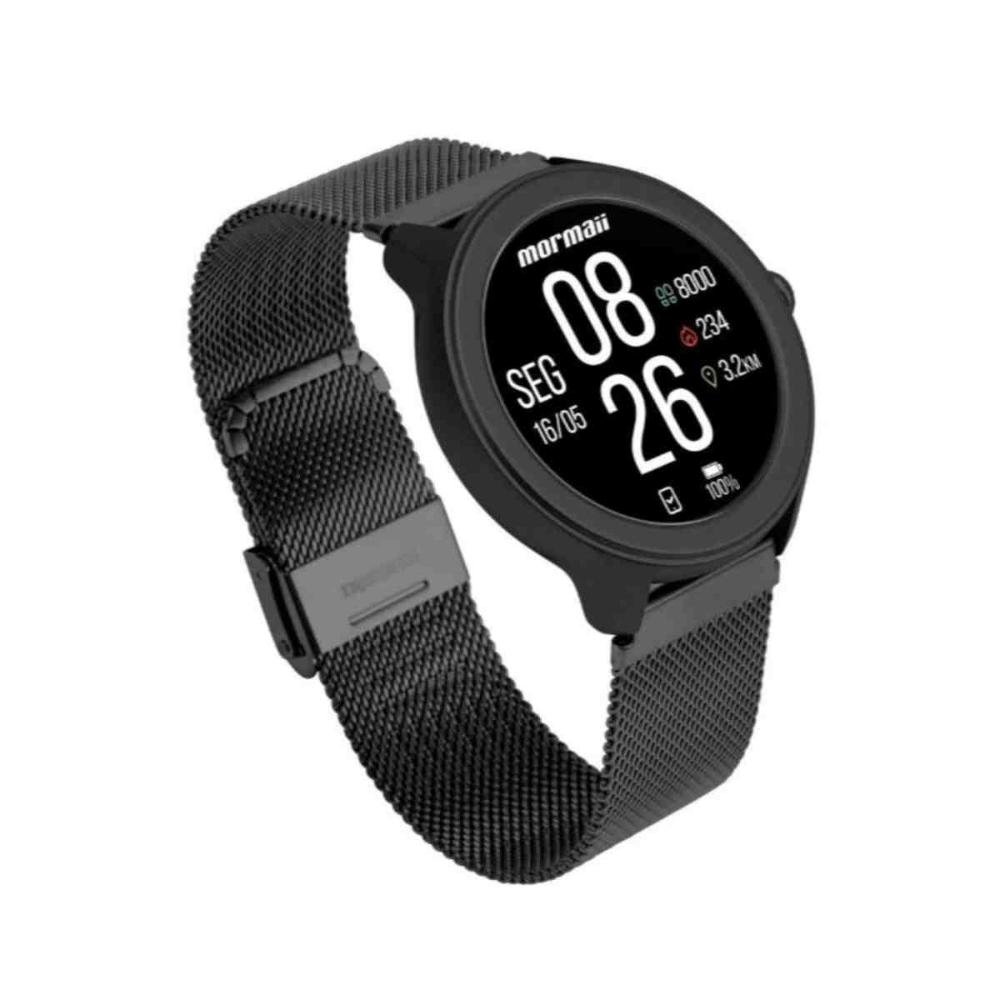 Seja bem-vindo à Elister! Aqui, priorizamos a qualidade através de produtos 100% originais, com garantia contra defeitos de fabricação e nota fiscal. Estamos há mais de 50 anos no mercado oferecendo uma ampla variedade de acessórios, incluindo relógios e óculos de sol, com as melhores marcas e estilos. Além disso, a nossa equipe é treinada para oferecer um atendimento excepcional, garantindo que cada cliente seja tratado com o respeito e a atenção que merece. Realizando a compra, não deixe de nos avaliar! Sua opinião é muito importante para aperfeiçoar cada vez mais o nosso trabalho. Esse produto é original e acompanha: Embalagem original; Manual de instruções; Garantia do fornecedor; Nota fiscal simplificada, que vai colada junto à etiqueta. ESPECIFICAÇÕES TÉCNICAS - Marca: Mormaii - Linha: Life - Referência: MOLIFEURAE/7P - Gênero: Unissex - Tipo de mostrador: Digital - Função (ões): Notificações de chamadas e mensagens, controle de música, monitoramento de +100 esportes, frequência cardíaca, oxigenação do sangue, monitoramento de sono, estresse e ciclo menstrual - Tipo de fecho: Gancho - Cor da caixa: Preto - Cor do mostrador: Personalizável via aplicativo - Cor da pulseira: Preto - Material da caixa: Polímero - Material da pulseira: Aço inoxidável tipo mesh - Largura da caixa: 4,6 cm - Espessura da caixa: 1,2 cm - Comprimento do relógio: 24 cm - Largura da pulseira: 2,2 cm - Resistência à água: 5 ATM (50 m) - Garantia: 12 meses