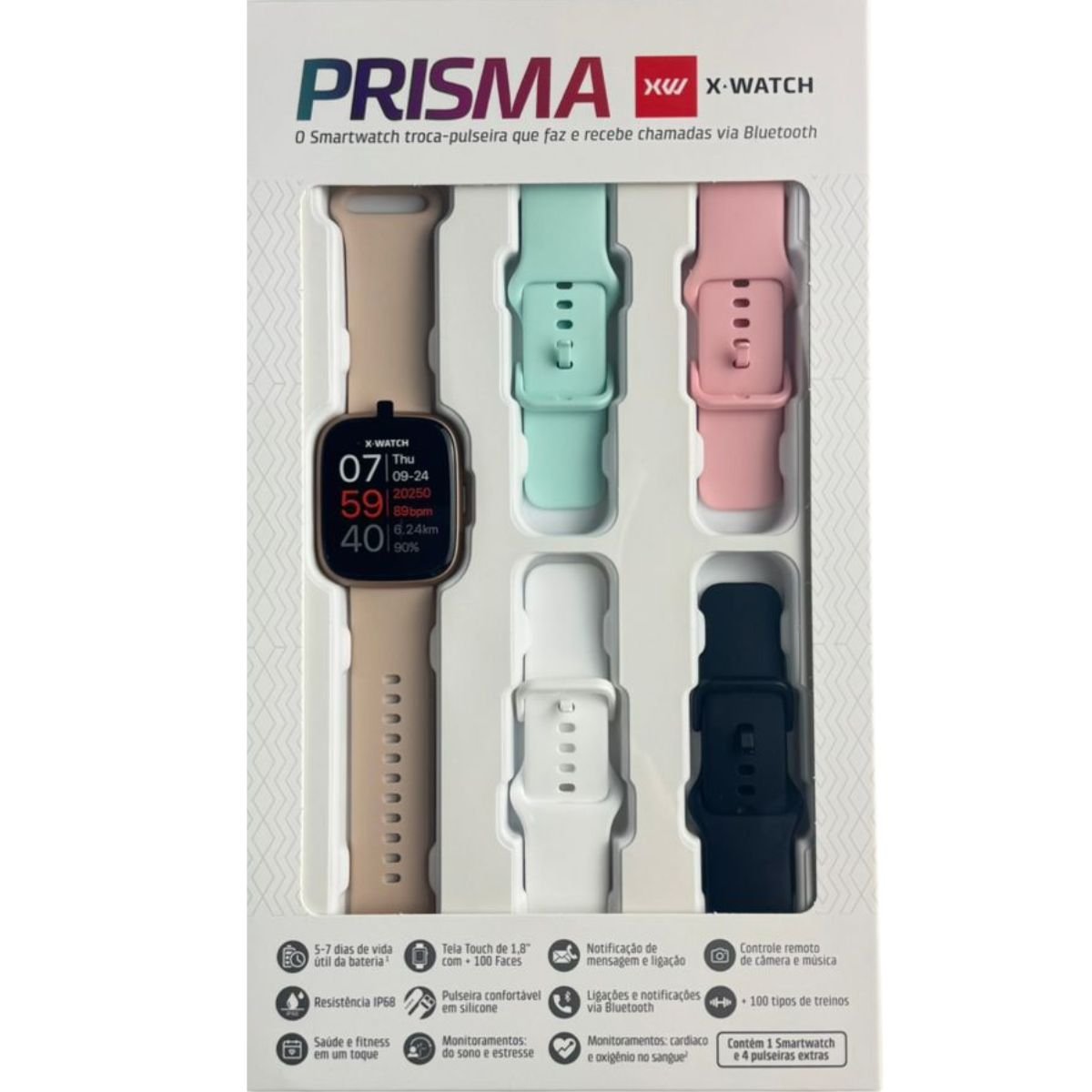 4 Pulseiras extra para o relógio (rosa, branco, preto, verde claro)