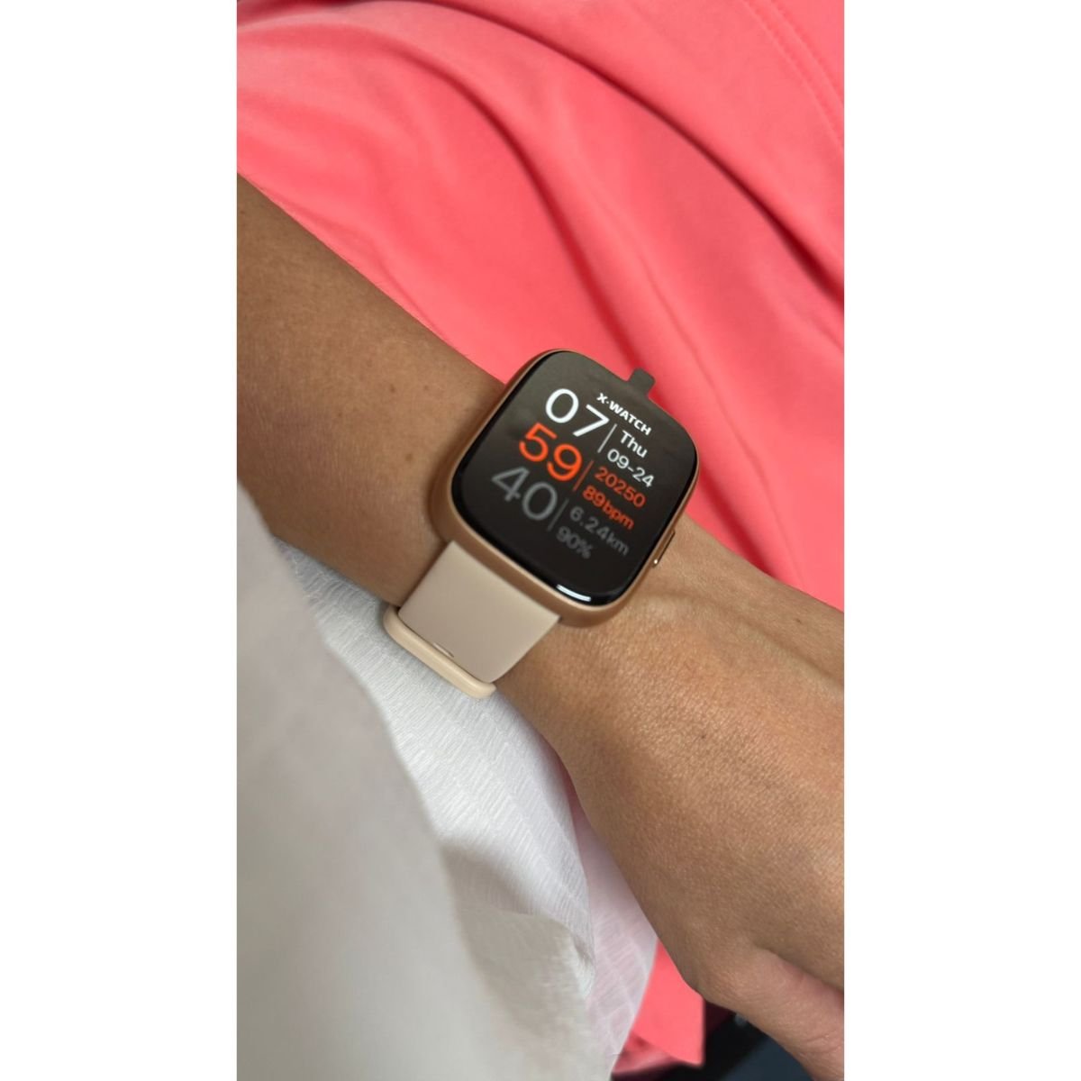 Relógio Unissex X-Watch Smartwatch Prisma Troca Pulseira Original Dourado XSWUQPI001A Pulseira Silicone Bege