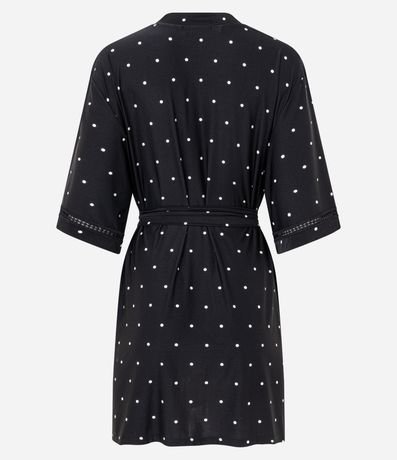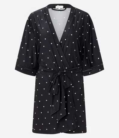 Ref: Robe feminino curto em microfibra, com amarração frontal, mangas 3/4 e estampado.