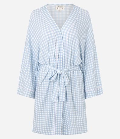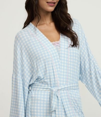 Ref: Robe de viscose com mangas longas, tira para amarração na cintura e estampa xadrez vichy.
