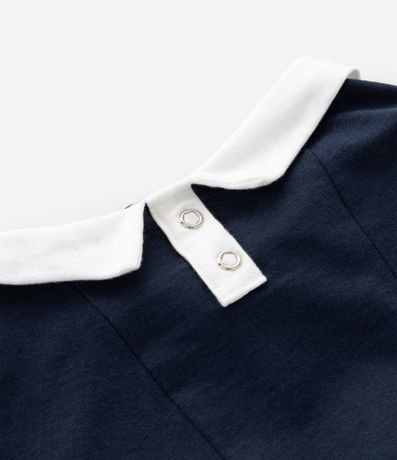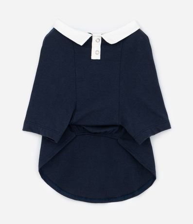 Roupa de pet no modelo polo com gola contrastante, botões e manga curta.