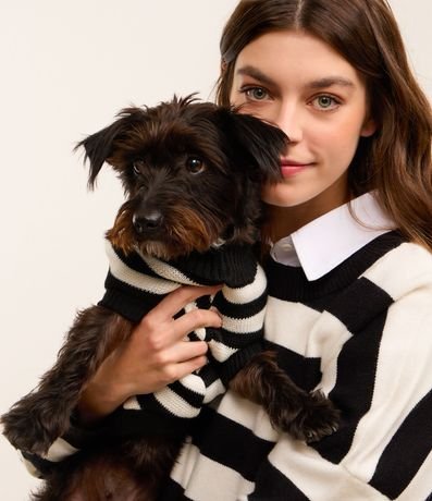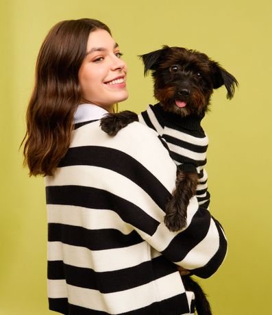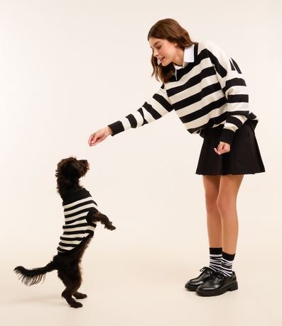 Ref: Roupinha para pets confeccionada em poliéster, com gola, mangas e barra caneladinhos e padronagem de listras bicolores.