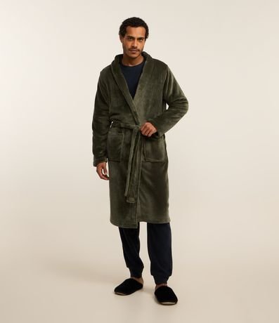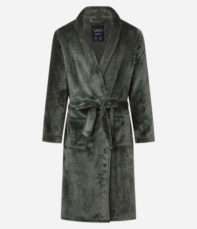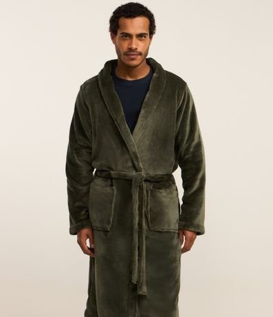 Roupão em Fleece com Amarração e Bolsos