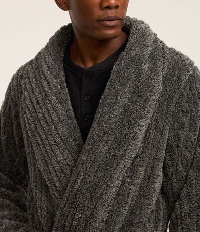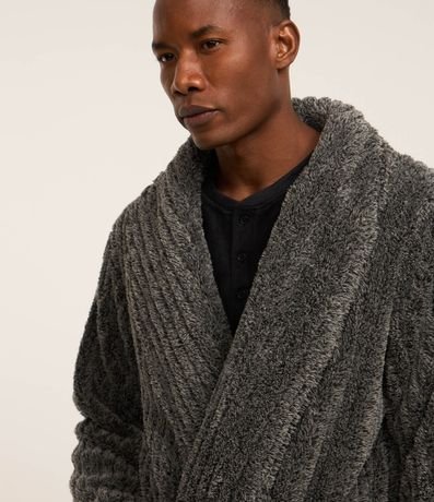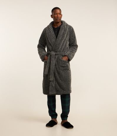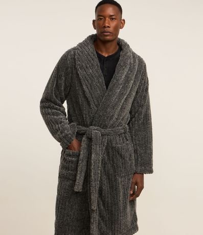Roupão em Plush com Textura Canelada Amarração e Bolsos