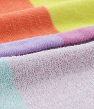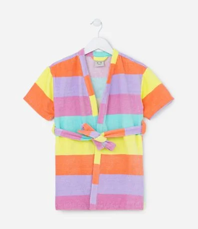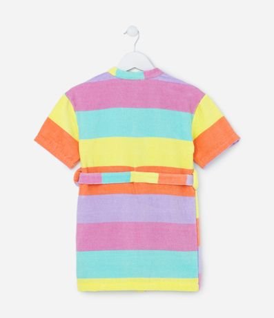 Ref: Roupão infantil atoalhado confeccionado em algodão com amarração na cintura, mangas curtas além de blocos de cores.