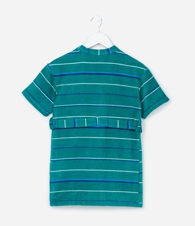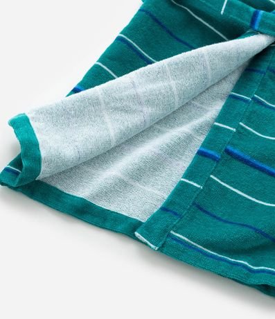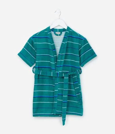 Ref: Roupão infantil de modelo atoalhado, confeccionado em algodão de material mais sustentável, ideal para sair do banho ou praia. Possui manga curta, faixa para amarração na cintura e estampa listrada.