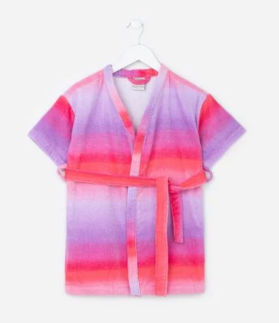 Ref: Roupão infantil de modelo atoalhado, confeccionado em algodão, ideal para sair do banho ou praia. Possui manga curta, faixa para amarração na cintura e estampa degradê.
