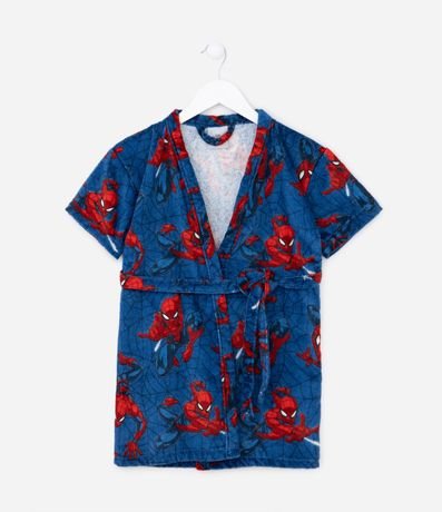 Ref: Roupão infantil atoalhado, com faixa para amarração e estampa do Homem Aranha.