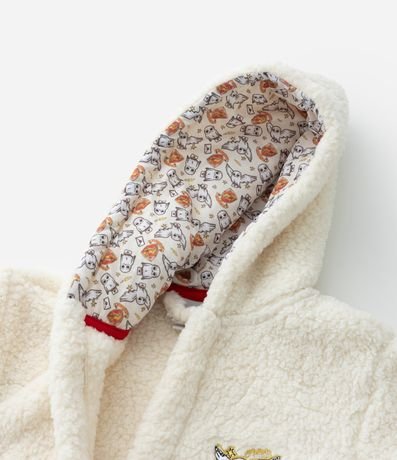 Ref: Roupão infantil quentinho em sherpa, com capuz , bolsos e faixa para amarração. Possui bordado da coruja Edwiges, do filme Harry Potter no peito.