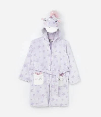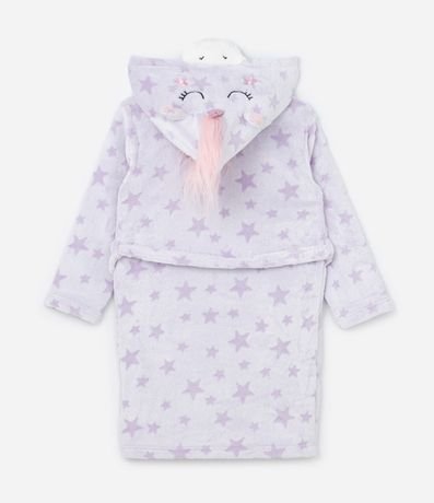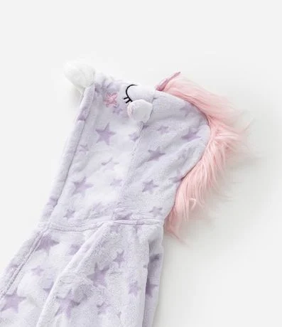 Ref: Roupão infantil quentinho em fleece, com capuz e bordado de unicórnio com orelhas e chifre, super divertido. Possui mangas longas, bolsos e amarração na cintura.