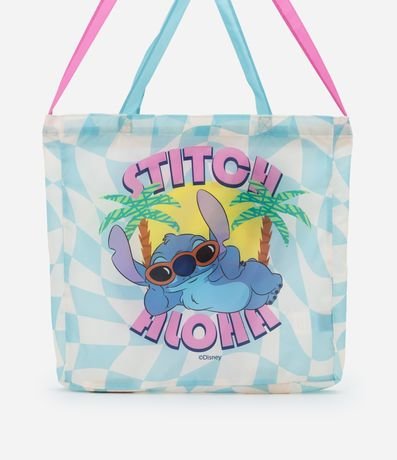 Ref: Sacola dobrável com alça dupla contrastante e estampa divertida do personagem Stitch aproveitando a praia.