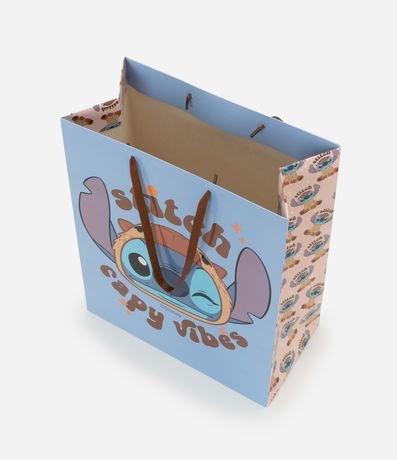 Sacola média com alças de gorgurão e estampa do Stitch vestido com roupinha de capivara. Este produto possui material mais sustentável em sua composição, sendo ambientalmente mais responsável.