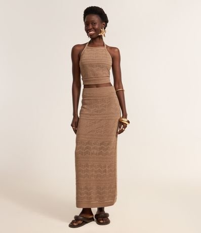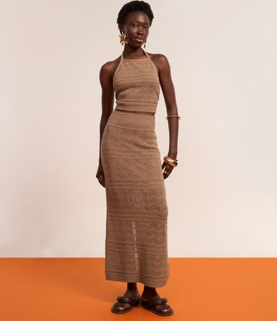 Saia Ajustada Long Midi em Tricô com Mix de Pontos