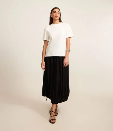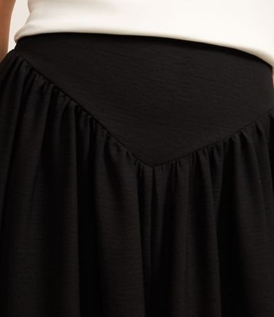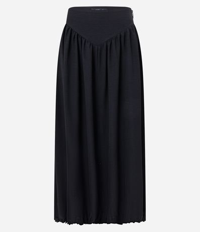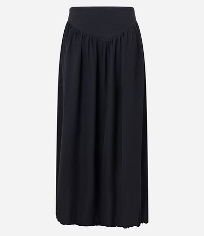 Ref: Saia de modelo balloon, longa e confeccionada em crepe. Possui cós largo e V, com fechamento por zíper e preguinhas.